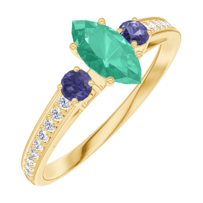 « L'ATELIER » NR. 162365Ring Geelgoud 18 karaat - Smaragd Markies 0.3 Karaat - Aanleunende edelstenen Blauwe saffier - Setting Diamant