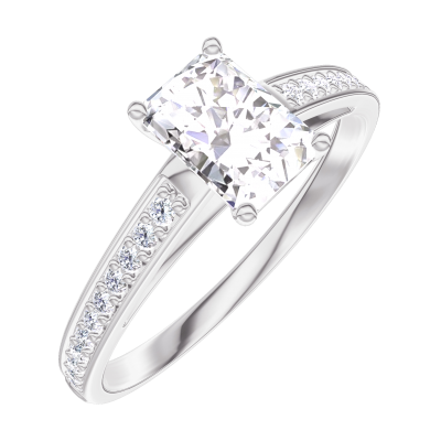 « L'ATELIER » NR. 162608Ring Witgoud 9 karaat - Diamant Rechthoekig 0.5 Karaat - Setting Diamant