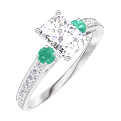 « L'ATELIER » Nº162687Ring Witgoud 18 karaat - Diamant Rechthoekig 0.5 Karaat - Aanleunende edelstenen Smaragd - Setting Diamant