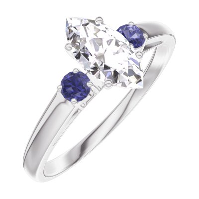« L'ATELIER » Nº162963Ring Witgoud 18 karaat - Diamant Markies 0.5 Karaat - Aanleunende edelstenen Blauwe saffier