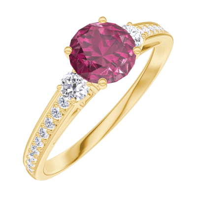 « L'ATELIER » NR. 163026Ring Geelgoud 9 karaat - Robijn rond 0.5 Karaat - Aanleunende edelstenen Diamant - Setting Diamant 4.5