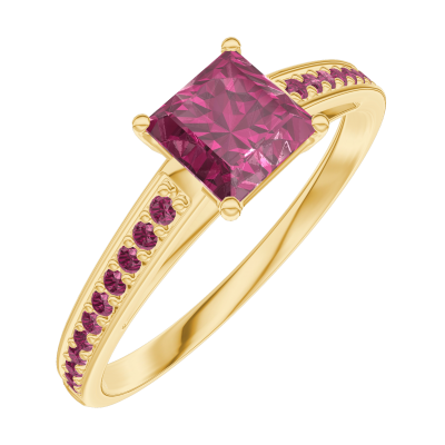 « L'ATELIER » NR. 163110Ring Geelgoud 9 karaat - Robijn Prinses 0.5 Karaat - Setting Robijn