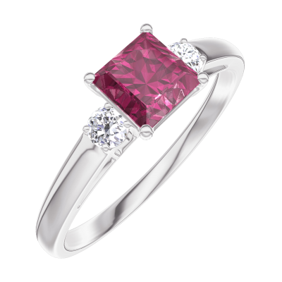 « L'ATELIER » Nº163123Ring Witgoud 18 karaat - Robijn Prinses 0.5 Karaat - Aanleunende edelstenen Diamant
