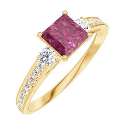 « L'ATELIER » NR. 163125Ring Geelgoud 18 karaat - Robijn Prinses 0.5 Karaat - Aanleunende edelstenen Diamant - Setting Diamant