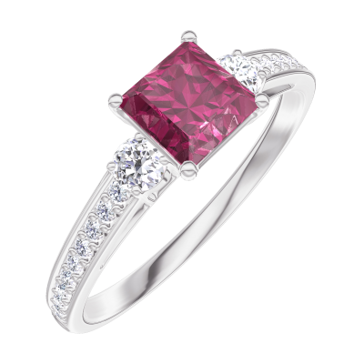 « L'ATELIER » NR. 163128Ring Witgoud 9 karaat - Robijn Prinses 0.5 Karaat - Aanleunende edelstenen Diamant - Setting Diamant