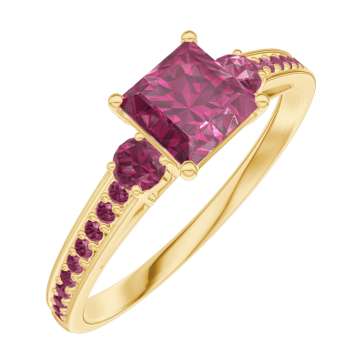 « L'ATELIER » NR. 163150Ring Geelgoud 9 karaat - Robijn Prinses 0.5 Karaat - Aanleunende edelstenen Robijn - Setting Robijn