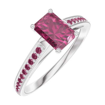 « L'ATELIER » NR. 163211Ring Witgoud 18 karaat - Robijn Rechthoekig 0.5 Karaat - Setting Robijn