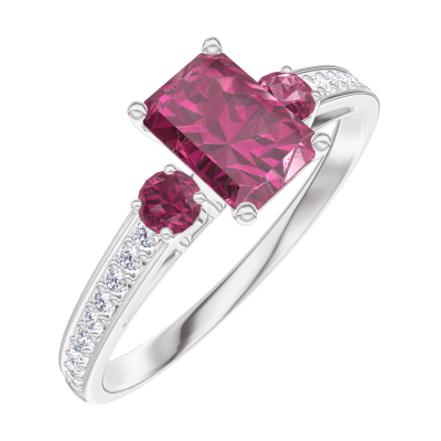 « L'ATELIER » NR. 163248Ring Witgoud 9 karaat - Robijn Rechthoekig 0.5 Karaat - Aanleunende edelstenen Robijn - Setting Diamant