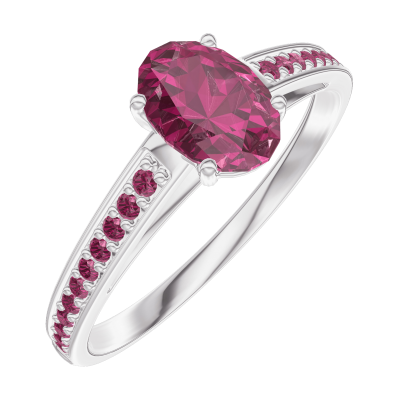 « L'ATELIER » Nº163311Ring Witgoud 18 karaat - Robijn Ovaal 0.5 Karaat - Setting Robijn