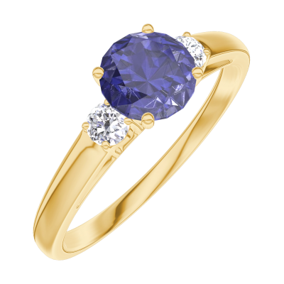 « L'ATELIER » Nº163621Ring Geelgoud 18 karaat - Blauwe saffier rond 0.5 Karaat - Aanleunende edelstenen Diamant 4.5