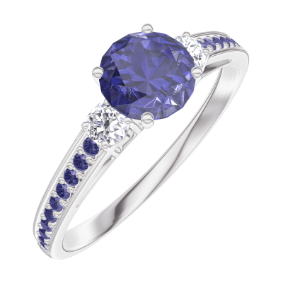 « L'ATELIER » NR. 163636Ring Witgoud 9 karaat - Blauwe saffier rond 0.5 Karaat - Aanleunende edelstenen Diamant - Setting Blauwe saffier 4.5