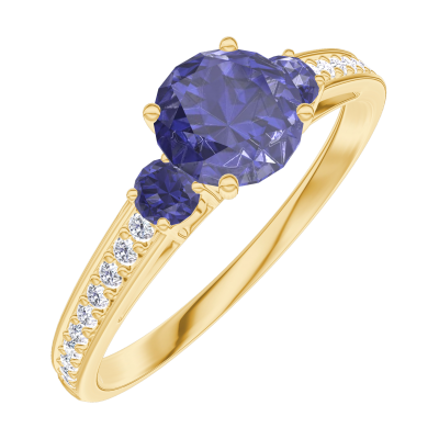 « L'ATELIER » Nº163666Ring Geelgoud 9 karaat - Blauwe saffier rond 0.5 Karaat - Aanleunende edelstenen Blauwe saffier - Setting Diamant 4.5