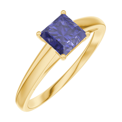 « L'ATELIER » NR. 163701Ring Geelgoud 18 karaat - Blauwe saffier Prinses 0.5 Karaat