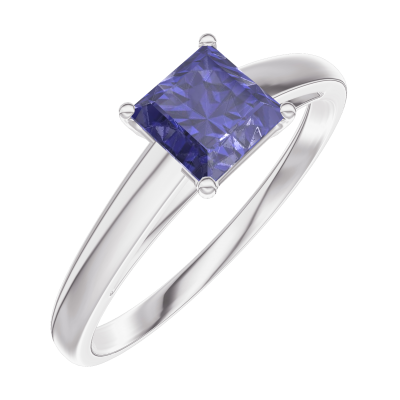 « L'ATELIER » Nº163704Ring Witgoud 9 karaat - Blauwe saffier Prinses 0.5 Karaat