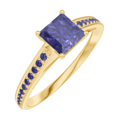« L'ATELIER » NR. 163714Ring Geelgoud 9 karaat - Blauwe saffier Prinses 0.5 Karaat - Setting Blauwe saffier