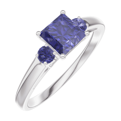 « L'ATELIER » Nº163764Ring Witgoud 9 karaat - Blauwe saffier Prinses 0.5 Karaat - Aanleunende edelstenen Blauwe saffier