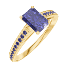 « L'ATELIER » NR. 163814Ring Geelgoud 9 karaat - Blauwe saffier Rechthoekig 0.5 Karaat - Setting Blauwe saffier