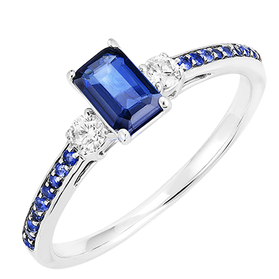 « L'ATELIER » Nº163836Ring Witgoud 9 karaat - Blauwe saffier Rechthoekig 0.5 Karaat - Aanleunende edelstenen Diamant - Setting Blauwe saffier