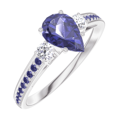 « L'ATELIER » Nº164035Ring Witgoud 18 karaat - Blauwe saffier Peer 0.5 Karaat - Aanleunende edelstenen Diamant - Setting Blauwe saffier