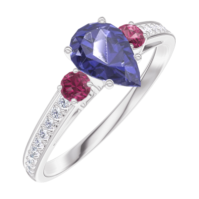 « L'ATELIER » NR. 164047Ring Witgoud 18 karaat - Blauwe saffier Peer 0.5 Karaat - Aanleunende edelstenen Robijn - Setting Diamant