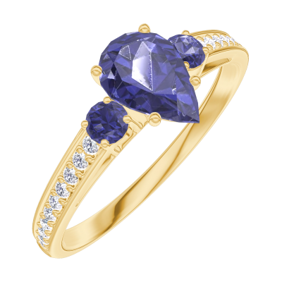 « L'ATELIER » Nº164066Ring Geelgoud 9 karaat - Blauwe saffier Peer 0.5 Karaat - Aanleunende edelstenen Blauwe saffier - Setting Diamant
