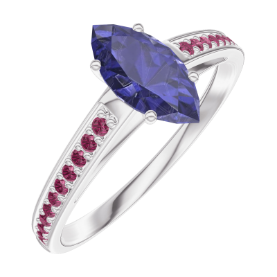 « L'ATELIER » NR. 164112Ring Witgoud 9 karaat - Blauwe saffier Markies 0.5 Karaat - Setting Robijn