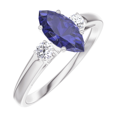 « L'ATELIER » NR. 164124Ring Witgoud 9 karaat - Blauwe saffier Markies 0.5 Karaat - Aanleunende edelstenen Diamant