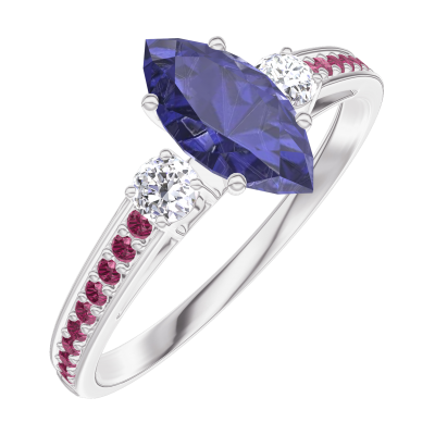 « L'ATELIER » Nº164131Ring Witgoud 18 karaat - Blauwe saffier Markies 0.5 Karaat - Aanleunende edelstenen Diamant - Setting Robijn
