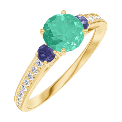 « L'ATELIER » NR. 164265Ring Geelgoud 18 karaat - Smaragd rond 0.5 Karaat - Aanleunende edelstenen Blauwe saffier - Setting Diamant 4.5