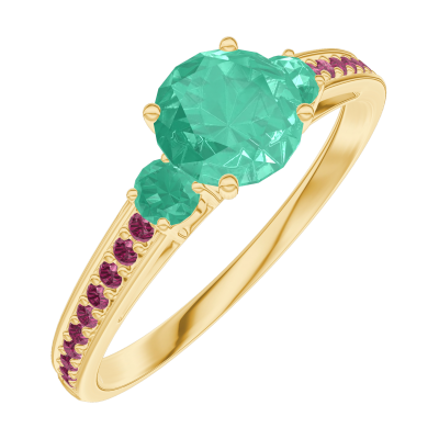 « L'ATELIER » Nº164290Ring Geelgoud 9 karaat - Smaragd rond 0.5 Karaat - Aanleunende edelstenen Smaragd - Setting Robijn 4.5 (15)