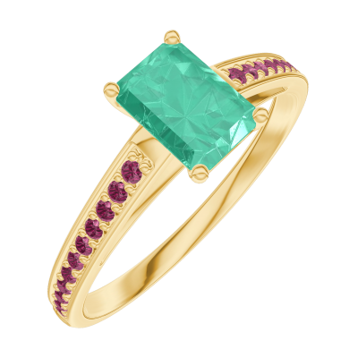 « L'ATELIER » Nº164410Ring Geelgoud 9 karaat - Smaragd Rechthoekig 0.5 Karaat - Setting Robijn