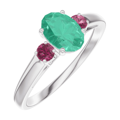 « L'ATELIER » Nº164544Ring Witgoud 9 karaat - Smaragd Ovaal 0.5 Karaat - Aanleunende edelstenen Robijn