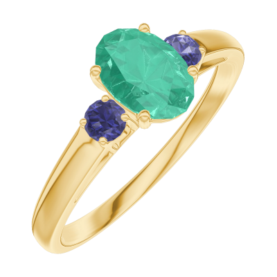 « L'ATELIER » Nº164561Ring Geelgoud 18 karaat - Smaragd Ovaal 0.5 Karaat - Aanleunende edelstenen Blauwe saffier