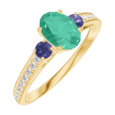 « L'ATELIER » Nº164566Ring Geelgoud 9 karaat - Smaragd Ovaal 0.5 Karaat - Aanleunende edelstenen Blauwe saffier - Setting Diamant