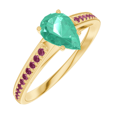 « L'ATELIER » Nº164610Ring Geelgoud 9 karaat - Smaragd Peer 0.5 Karaat - Setting Robijn