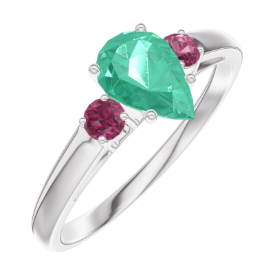 « L'ATELIER » Nº164643Ring Witgoud 18 karaat - Smaragd Peer 0.5 Karaat - Aanleunende edelstenen Robijn