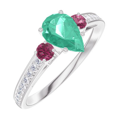 « L'ATELIER » NR. 164647Ring Witgoud 18 karaat - Smaragd Peer 0.5 Karaat - Aanleunende edelstenen Robijn - Setting Diamant
