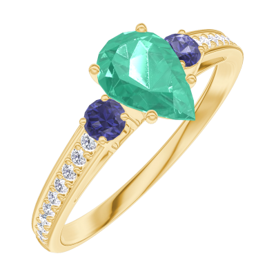 « L'ATELIER » Nº164665Ring Geelgoud 18 karaat - Smaragd Peer 0.5 Karaat - Aanleunende edelstenen Blauwe saffier - Setting Diamant