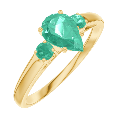« L'ATELIER » Nº164682Ring Geelgoud 9 karaat - Smaragd Peer 0.5 Karaat - Aanleunende edelstenen Smaragd