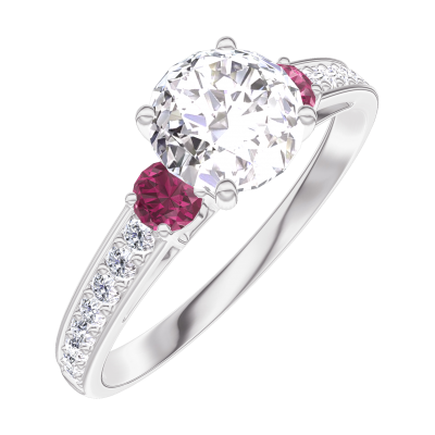 « L'ATELIER » NR. 164847Ring Witgoud 18 karaat - Diamant rond 0.7 Karaat - Aanleunende edelstenen Robijn - Setting Diamant 4.9
