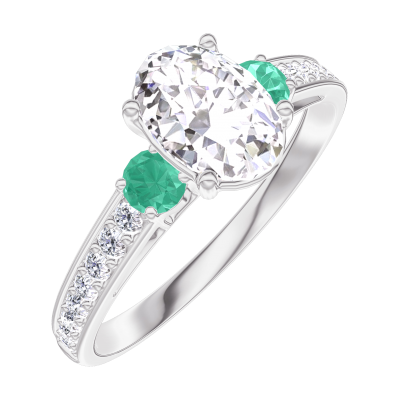 « L'ATELIER » Nº165187Ring Witgoud 18 karaat - Diamant Ovaal 0.7 Karaat - Aanleunende edelstenen Smaragd - Setting Diamant