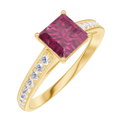 « L'ATELIER » Nº165506Ring Geelgoud 9 karaat - Robijn Prinses 0.7 Karaat - Setting Diamant
