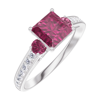 « L'ATELIER » NR. 165548Ring Witgoud 9 karaat - Robijn Prinses 0.7 Karaat - Aanleunende edelstenen Robijn - Setting Diamant