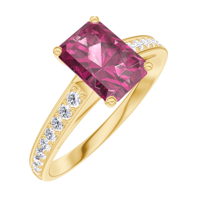 « L'ATELIER » NR. 165606Ring Geelgoud 9 karaat - Robijn Rechthoekig 0.7 Karaat - Setting Diamant