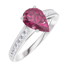 Ring Witgoud 18 karaat - Robijn Peer 0.7 Karaat - Setting Diamant