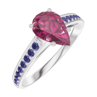 « L'ATELIER » NR. 165816Ring Witgoud 9 karaat - Robijn Peer 0.7 Karaat - Setting Blauwe saffier