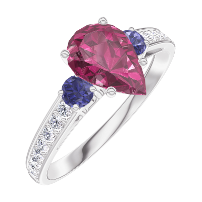 « L'ATELIER » NR. 165868Ring Witgoud 9 karaat - Robijn Peer 0.7 Karaat - Aanleunende edelstenen Blauwe saffier - Setting Diamant