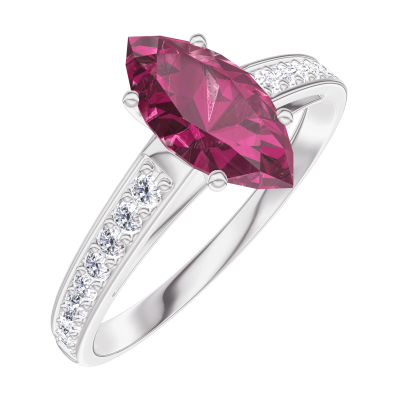 « L'ATELIER » Nº165907Ring Witgoud 18 karaat - Robijn Markies 0.7 Karaat - Setting Diamant
