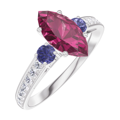 « L'ATELIER » NR. 165967Ring Witgoud 18 karaat - Robijn Markies 0.7 Karaat - Aanleunende edelstenen Blauwe saffier - Setting Diamant