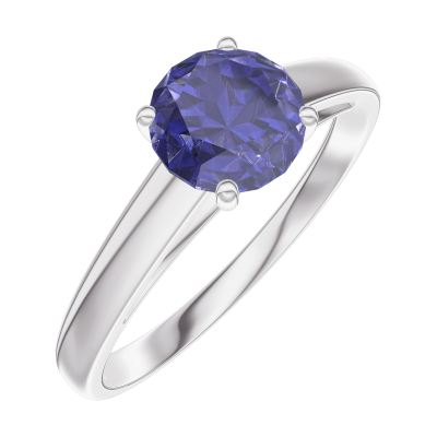 « L'ATELIER » NR. 166004Ring Witgoud 9 karaat - Blauwe saffier rond 0.7 Karaat 4.9